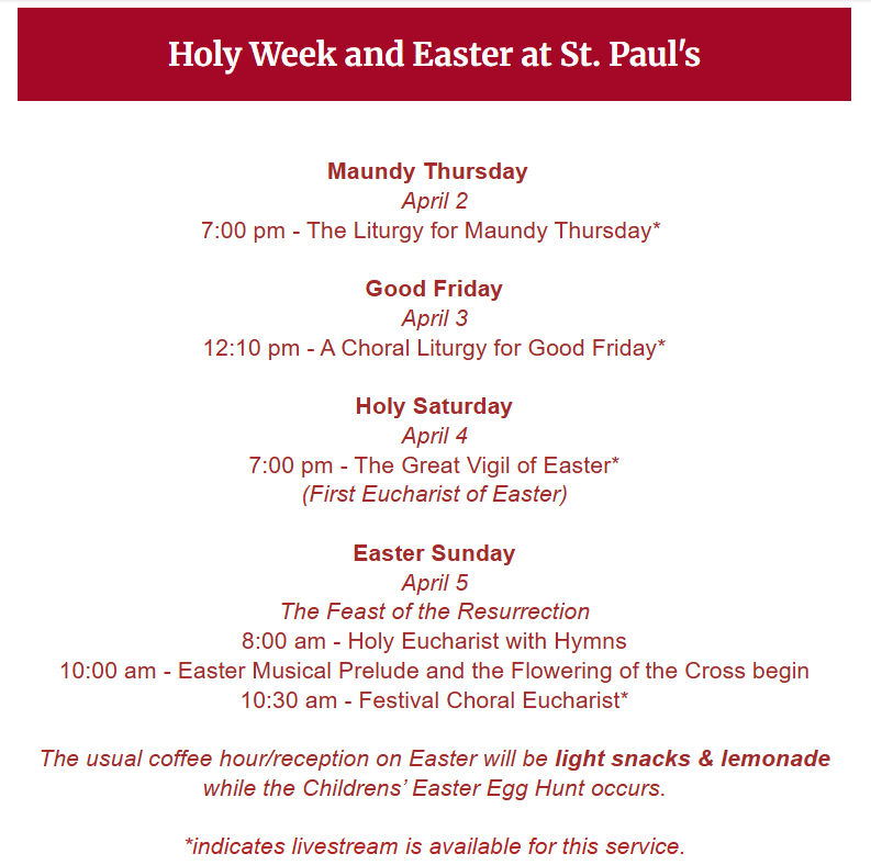 Whether you’re in search of that quiet pew, want to connect with St. Paul’s congregation or explore ways to serve, we’re glad you found us. Click below for a brief introduction to the mission and ministries of St. Paul’s Episcopal Church.